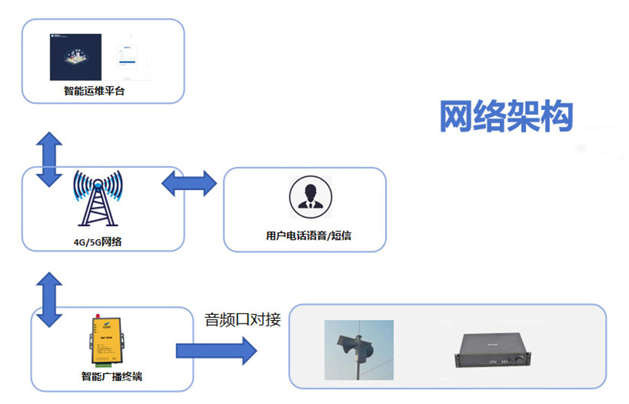 The intelligent broadcast terminal achieves voice connection with the audio port of the old broadcast equipment via its own audio port. This enables the network upgrade of on-site broadcasts without changing the existing environment, realizing the technical transition from 2G network to 4G/5G network.