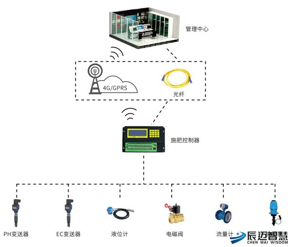 The water-fertilizer integration system mainly realizes integrated control of water and fertilizer for irrigation areas. Its main equipment includes fertilizer application controllers, fertilizer tank level gauges, PH transmitters, EC transmitters, fertilizer flowmeters, and fertilizer application equipment, etc.